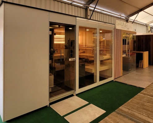 - immer 7-10 Saunakabinen ausgestellt